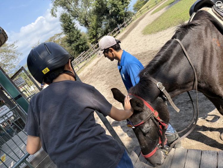 乗馬体験や羊の散歩、牧羊犬のショーなど子供も大満足の内容ではしゃぎすぎて暑いと半袖になってました。